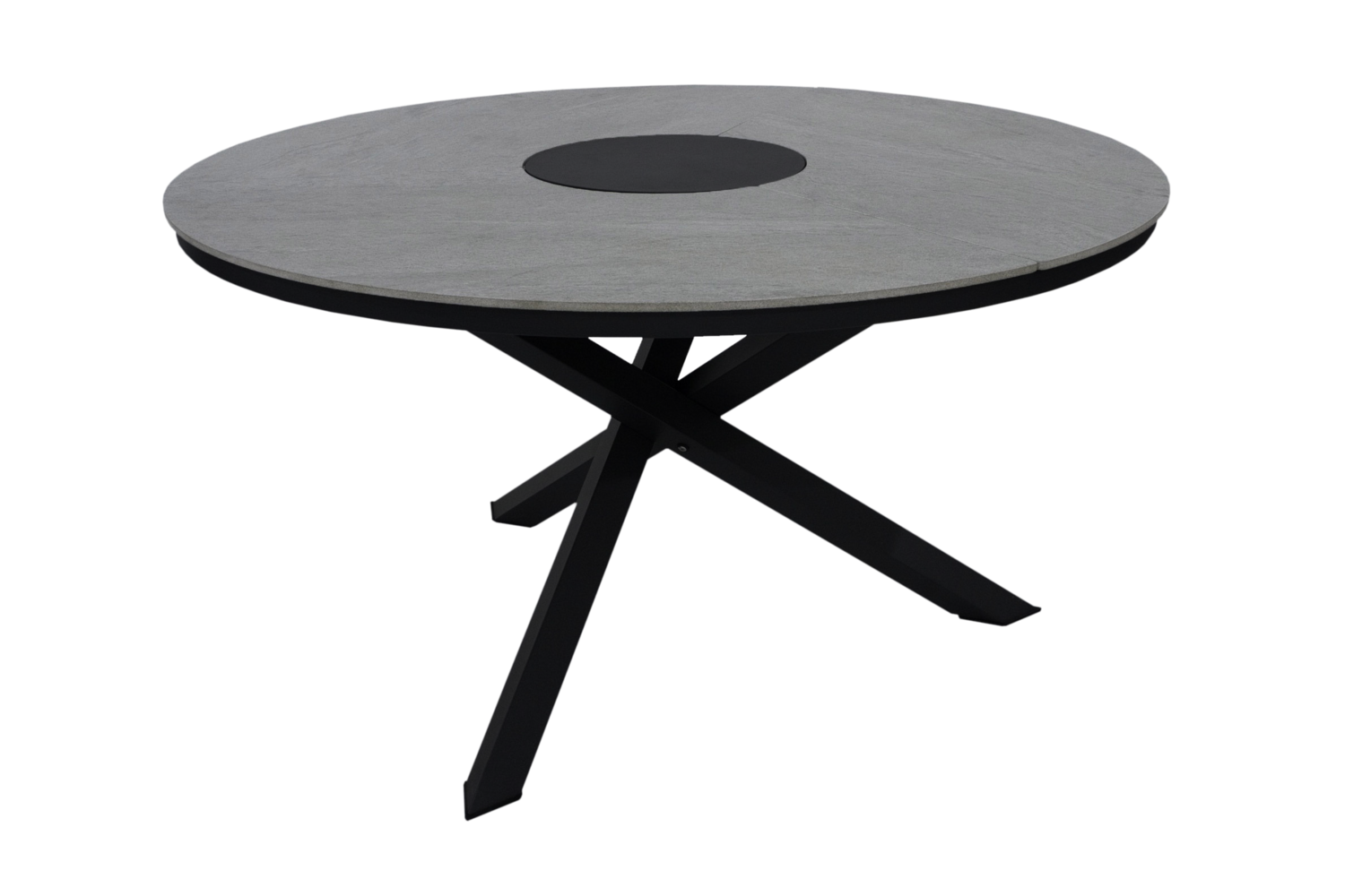 Runt aluminiumbord med en vacker keramisk bordstopp.