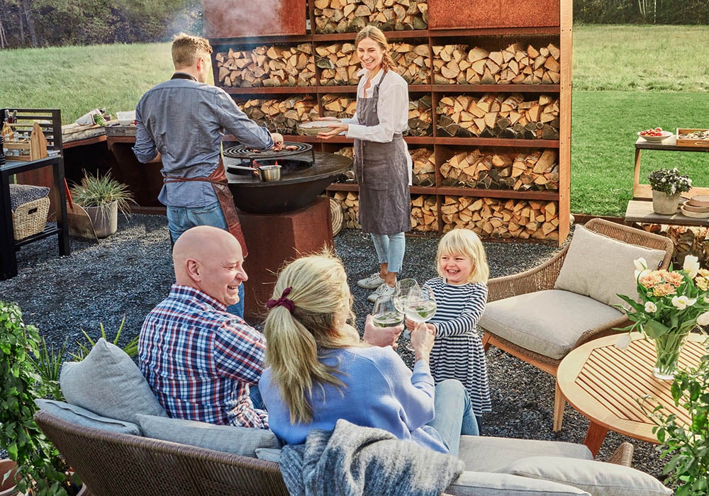 – Maten smakar helt enkelt godare ute. På sommaren kan man med en bra arbetsbänk göra det mesta utomhus, så länge det inte regnar. På vintern kanske man inte äter ute, men man kan väl bjuda på något varmt snacks från uteköket till en välkomstdrink, säger Mattias. Det viktiga och centrala är att hålla det hela ganska enkelt rent menymässigt, utnyttja att man faktiskt kan grilla året om och använda hällen till att steka och värma, menar både Cecilia och Mattias.