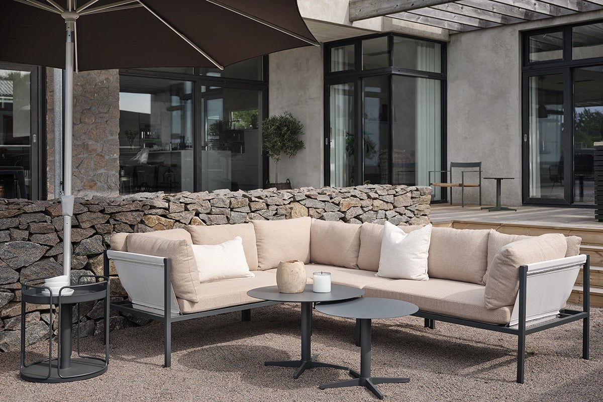Allie – allt i en låda. Upplev den perfekta blandningen av enkelhet och sofistikerad design, där varje element – från aluminiumramen till den livfulla textilensitsen. Bekväma kuddar i ett modernt kornfärgat tyg – allt kommer snyggt förpackat i en enda låda. Att montera din utomhusoas har aldrig varit enklare, vilket låter dig fokusera på att njuta av ditt utrymme snarare än på uppsättningen. Dess smarta konstruktion gör det också enkelt att förvara under vintern.