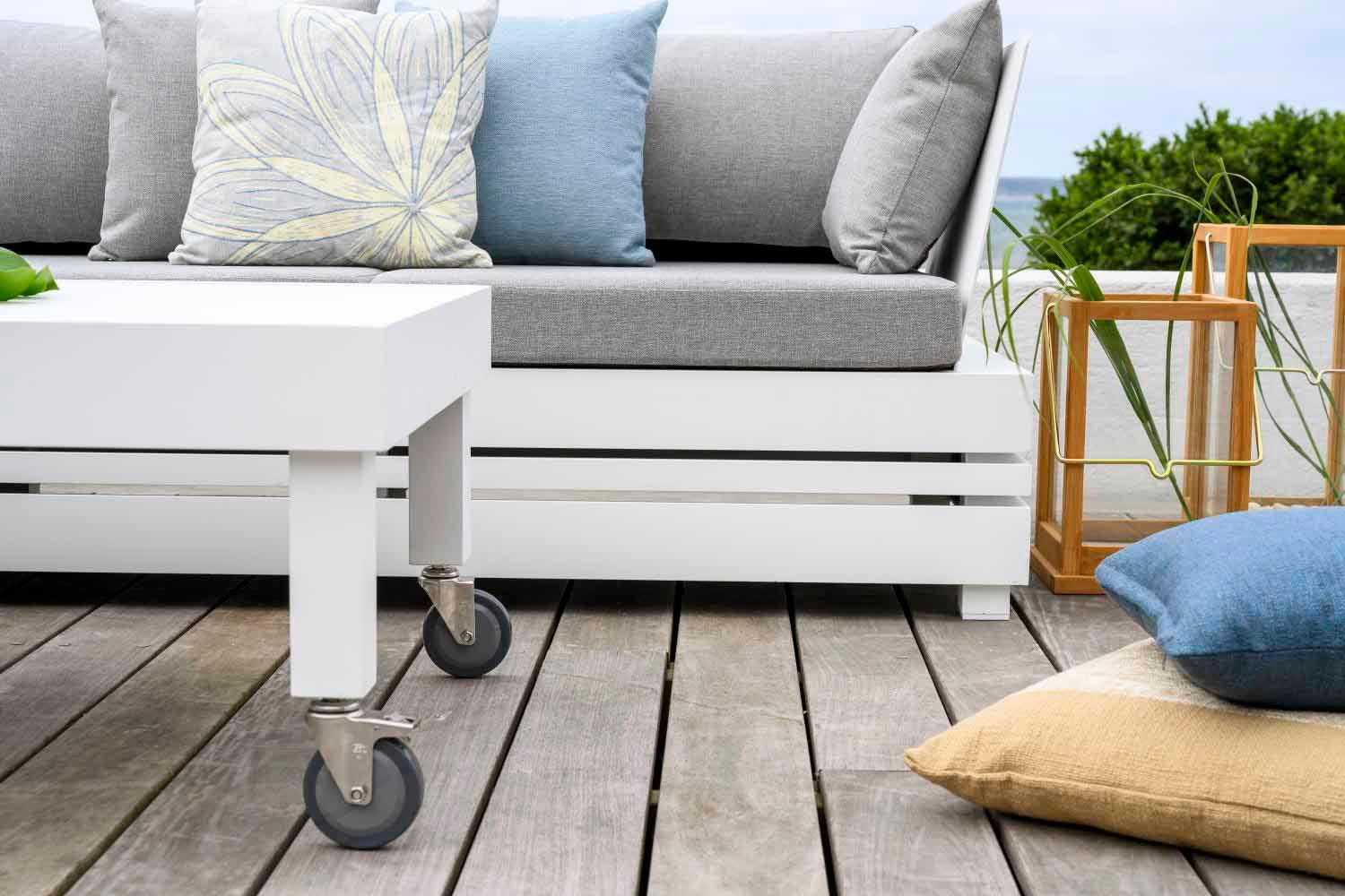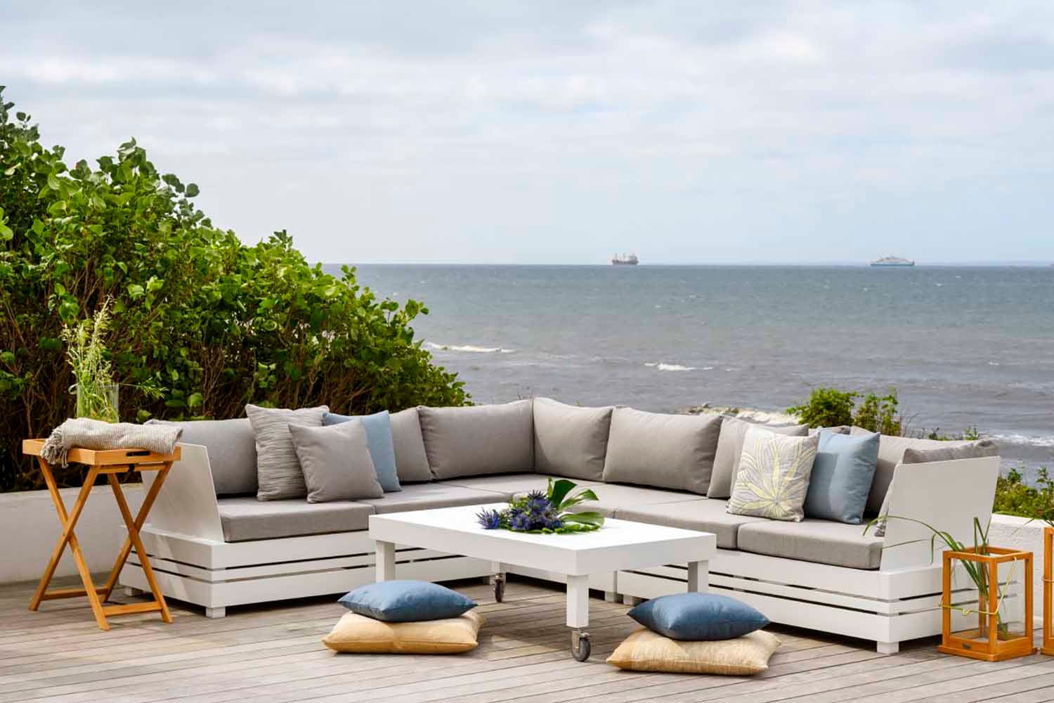 Stilren komfort med detaljer som tål att skärskådas. Ambon är en loungegrupp i aluminium med generösa mått samt dynor i olefintyg. Soffan består av få delar, har hög sittkomfort där du sitter djupt och mjukt. Samtliga dynor är allvädersdynor. Soffbordet är framtaget med en ny unik teknik som ger ett dämpande ljud på bordsskivan.