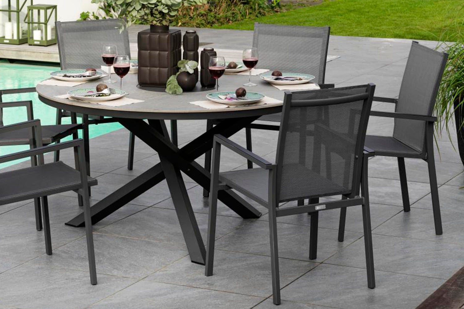 En smäcker stol i en snygg kombination av lackad aluminiumstomme och textilene. Stolarna matchas med fördel med något av våra bord och eftersom stolarna är stapelbara kan du snabbt och enkelt frigöra utrymme för annat när behovet dyker upp.