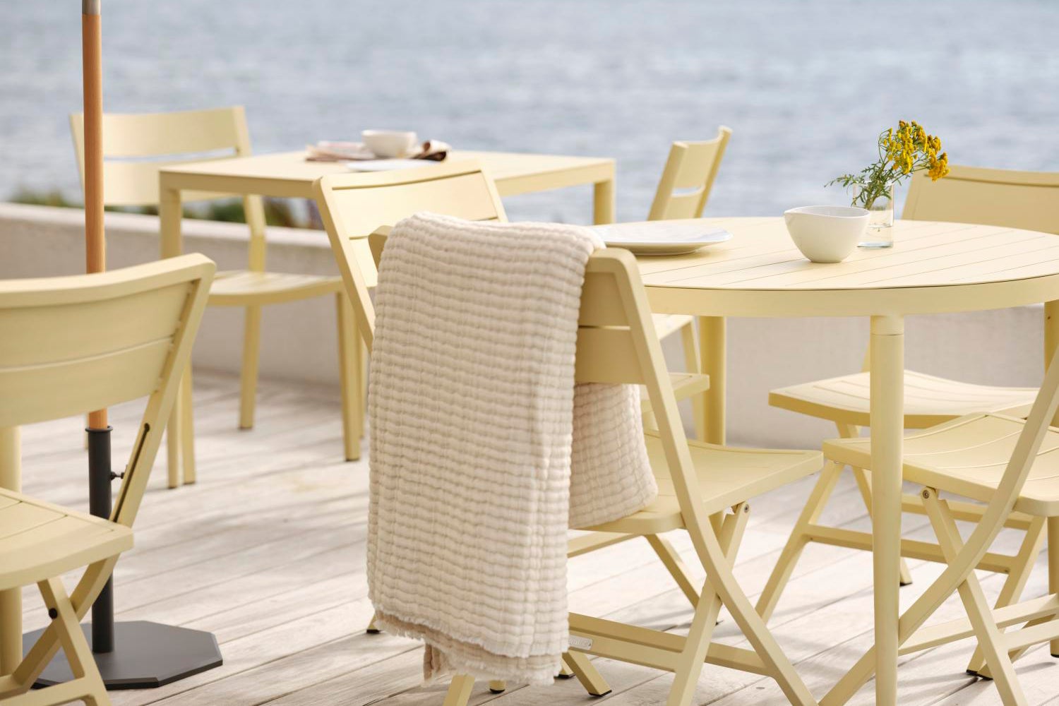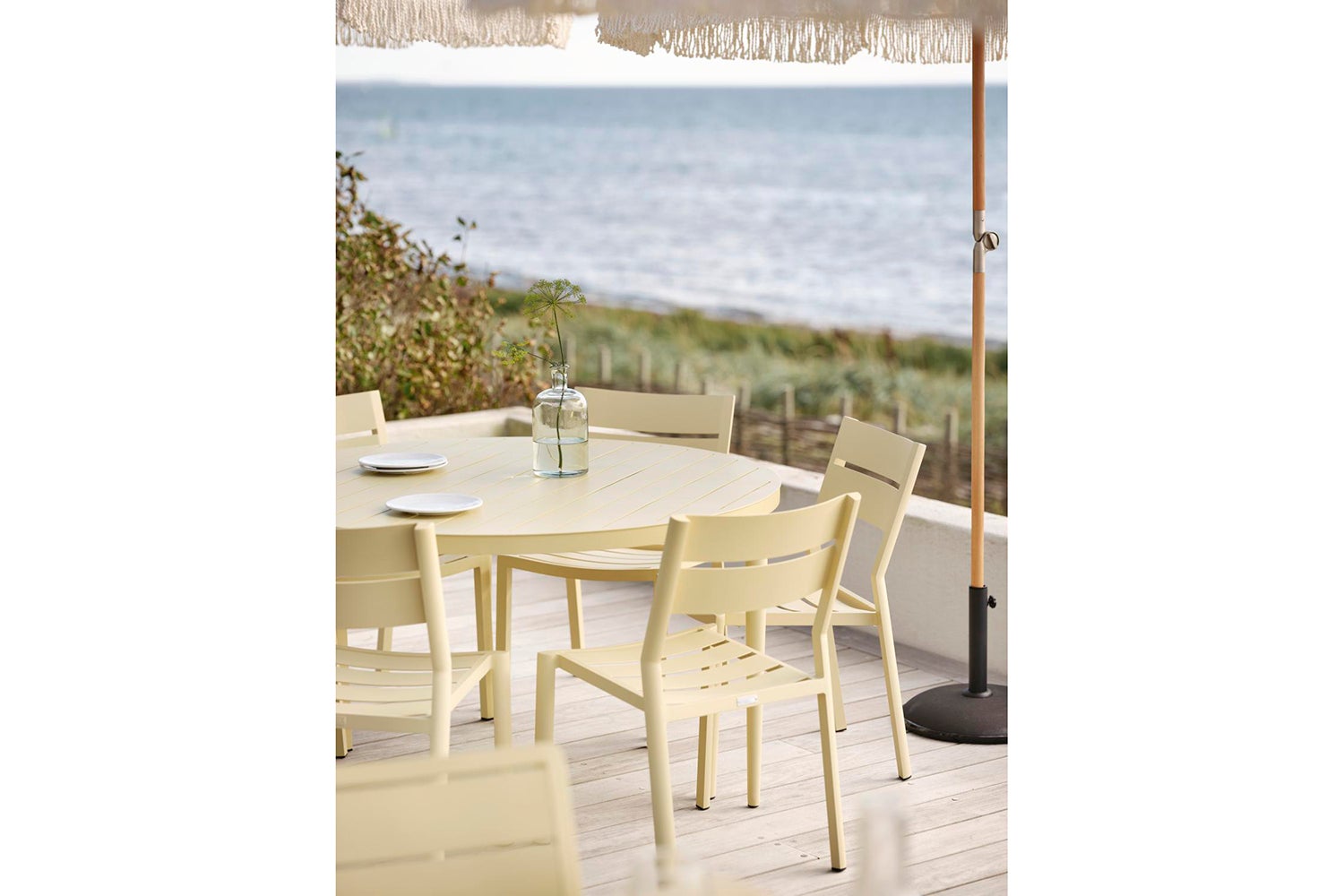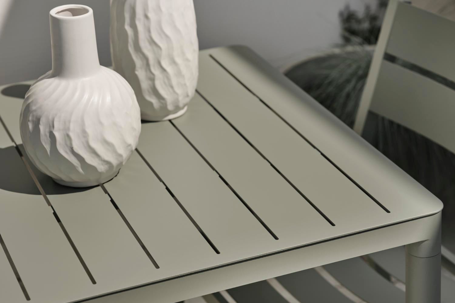 Med Bigby kombineras det bästa av skandinavisk design, storstadskänsla och sommar. Skapad i aluminium och utformad med eleganta linjer och genomtänkta detaljer – bland annat i de avsmalnande benen och stilrena bordskivan med ribbor. De somriga färgerna ger också det extra lyftet för känslan.