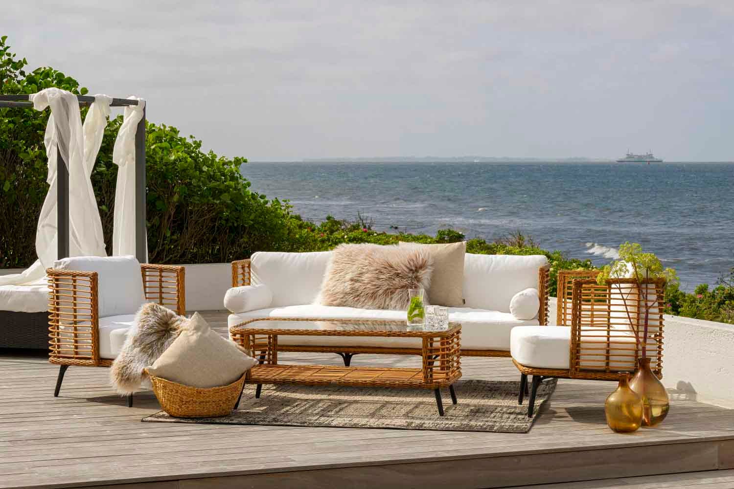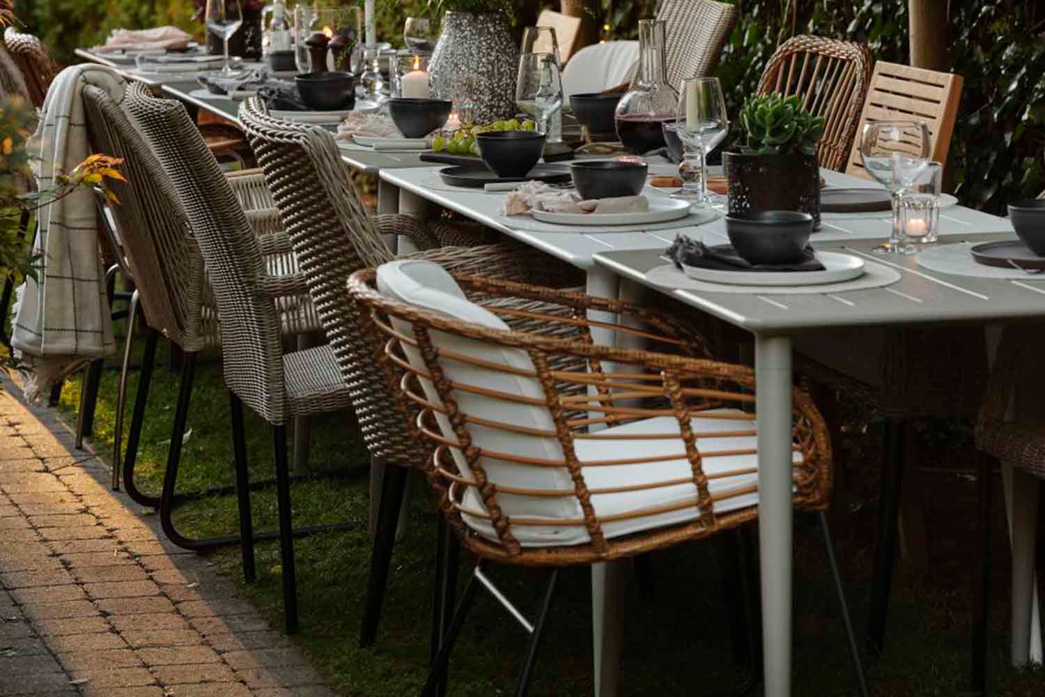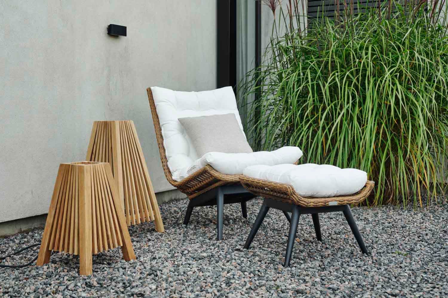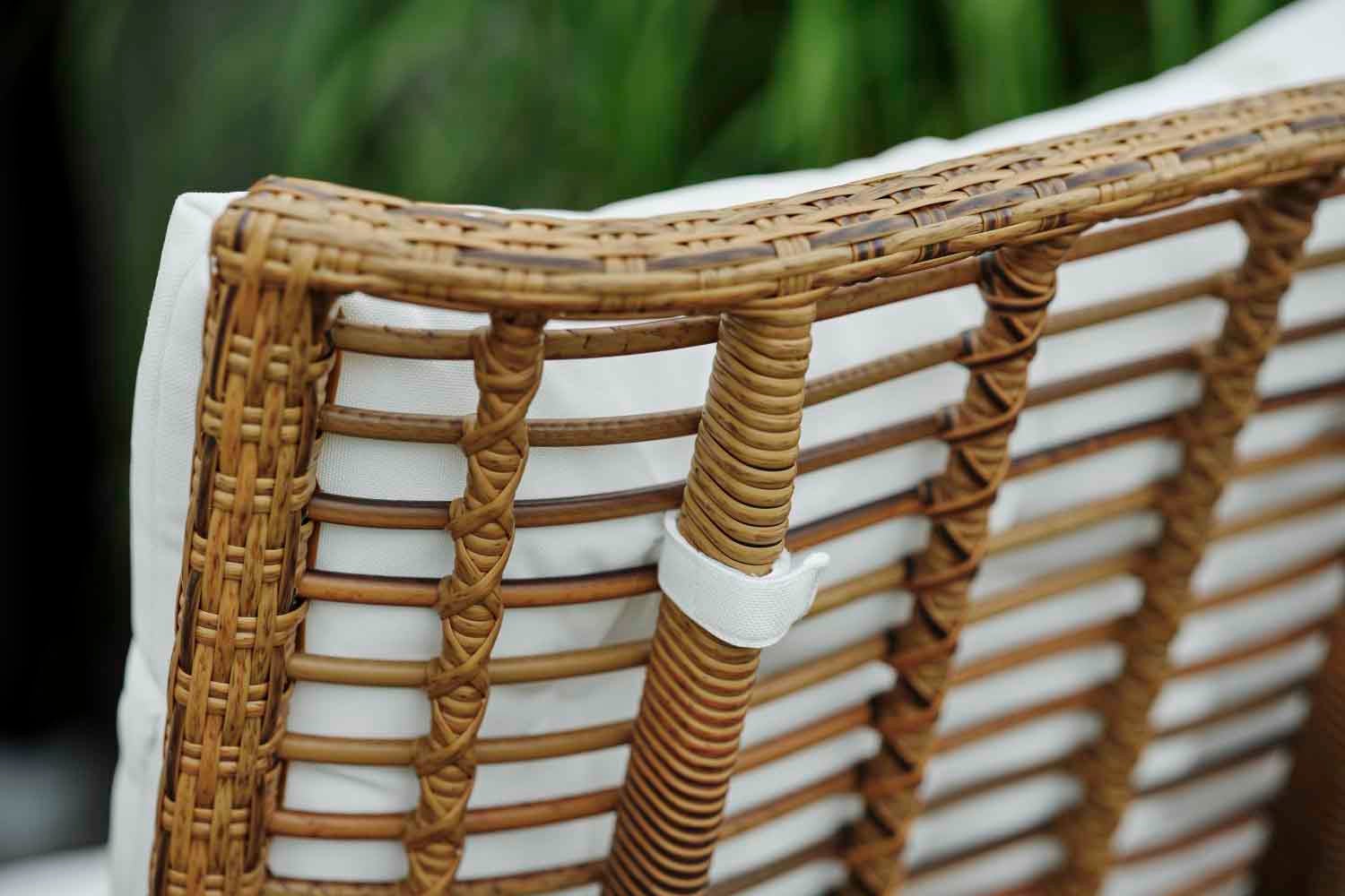 Det luftiga vävda mönstret är gjort av slitstark grov konstrotting med ett mycket naturtroget utseende. Bekväm sittkomfort och höga karmar skapar en extra ombonad känsla.