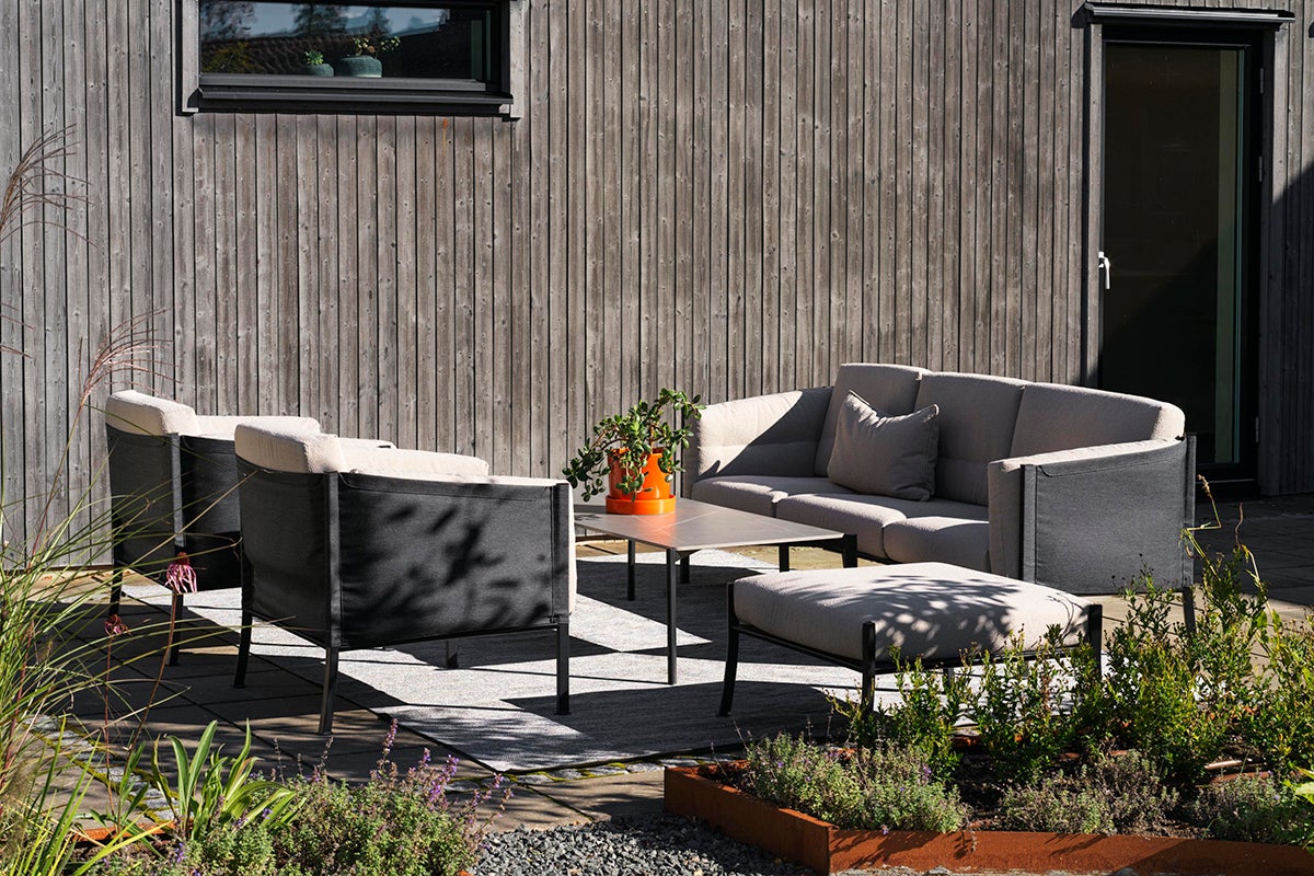 Delux. Namnet väcker en känsla av värme, mjukhet och lyx, och det stämmer. Den rostfria stålramen, de följsamma sidorna samt de extra mjuka dynorna i Super-Soft skum gör att det verkligen är Delux. Tyget på dynorna är i bouclé-inspirerat solefin-tyg. Delux erbjuder allt du kan önska dig i en utemöbel.
