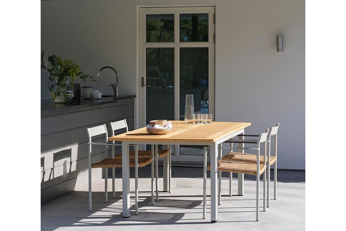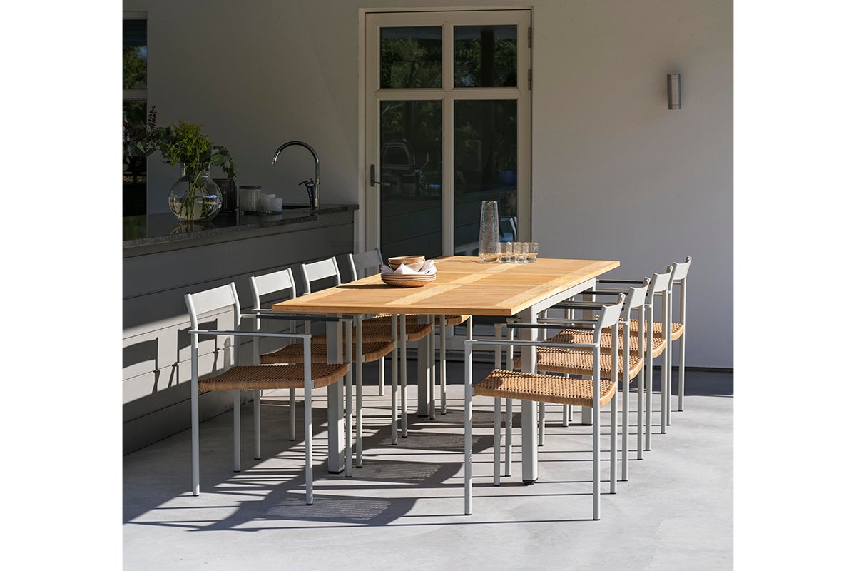 Lyon är ett förlängningsbord med butterflyskiva i teak. Designen på skivan ger en fin inramning till de rundade benen och hela konstruktionen är robust men samtidigt elegant. De klassiska färgerna gör att matchningen med många av våra stolar blir lätt oavsett vilken kombination du föredrar.