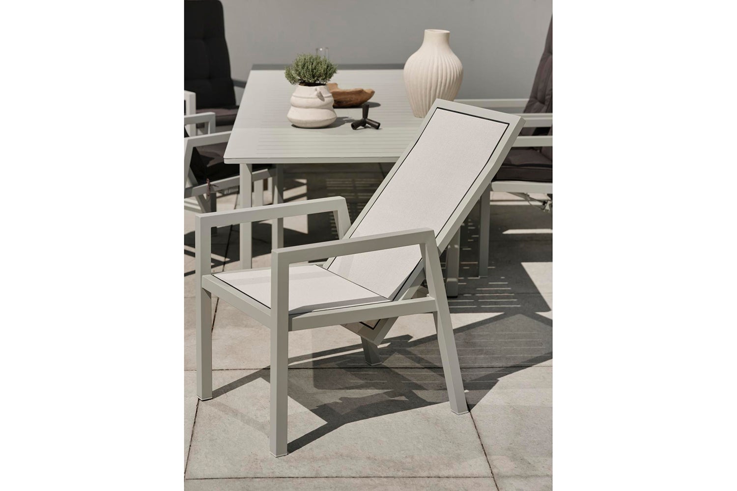 Newfort är en robust positionsstol med en bibehållen lätthet i formen. Med en stiligt dold knapp kan du lätt variera mellan upprätt och avslappnat läge.