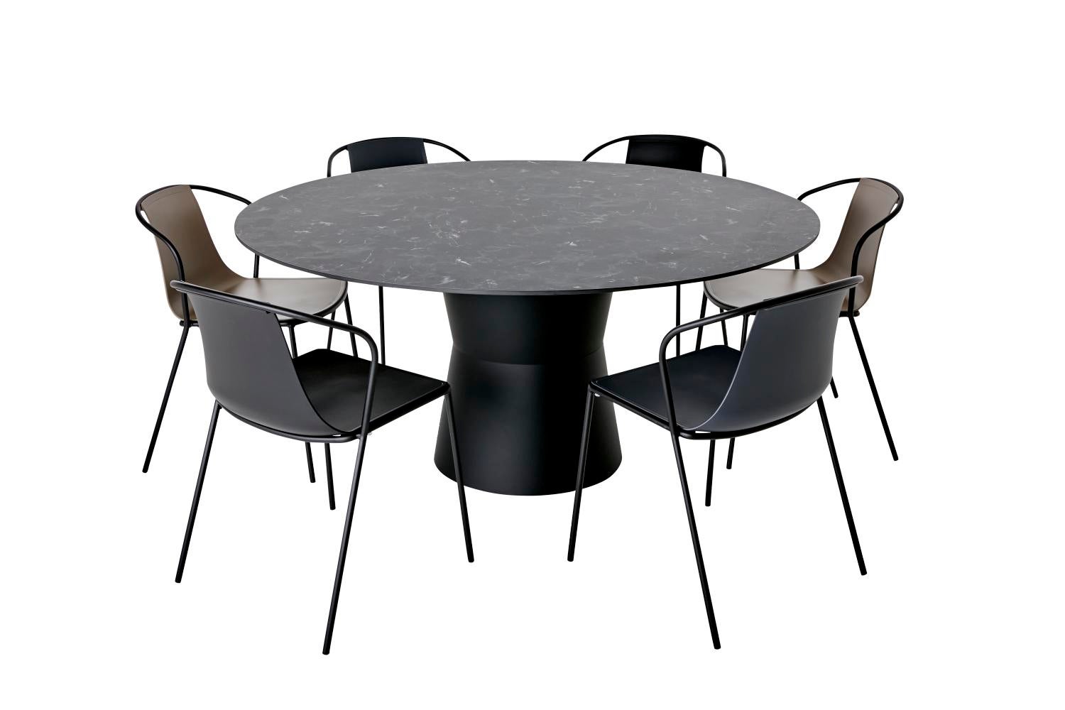 Det mångsidiga Nidaba runda bordet på Ø160cm kommer komplett med en kompakt laminatskiva och en geometrisk och minimal bas som är i 100% återvinningsbar teknopolymer. Det iögonfallande Nidaba-bordet går inte obemärkt förbi. Med sin minimala design i kombination med dess robusta utformning, är detta bord en perfekt match för alla utomhusutrymmen eller restaurangmiljöer.