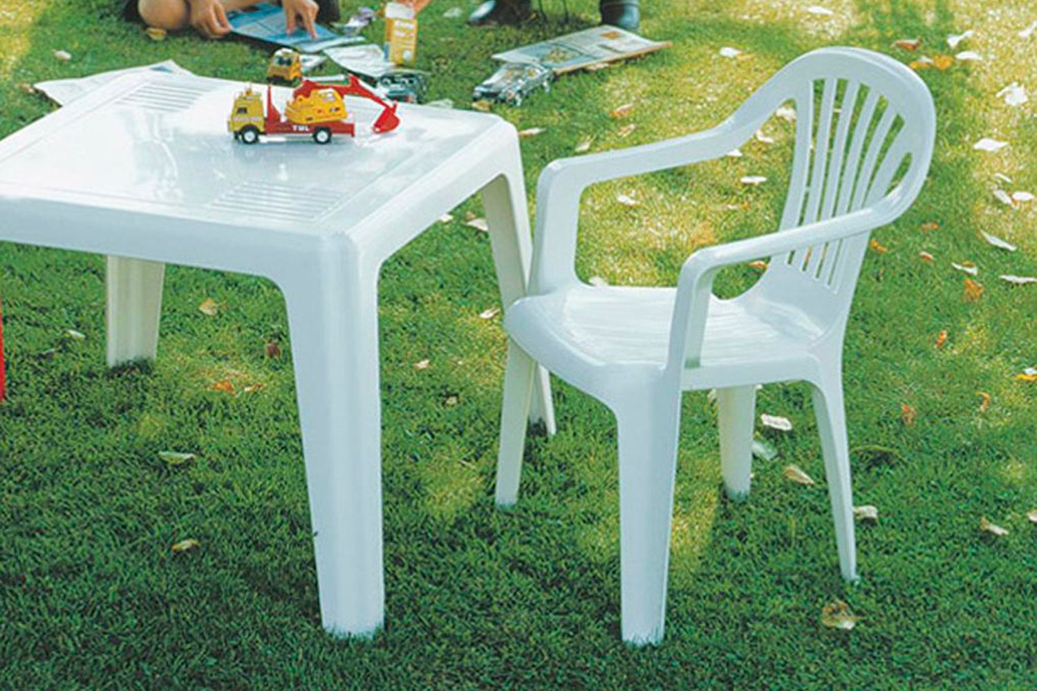Litet stapelbart barnbord i plast.