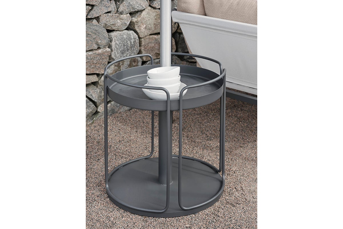 Shady sidobord är inte ett vanligt sidobord. Förutom att vara tungt och robust med två nivåer av bordsskivor, fungerar det även som en parasollfot vid behov. Den genomtänkta designen tar hänsyn till att vi alltid har saker att ställa av när vi är utomhus - saker som ofta gynnas av att vara i skuggan. Så, placera Shady vid sidan av din fåtölj eller soffa och dra nyttan av det. Tillverkat i stål.