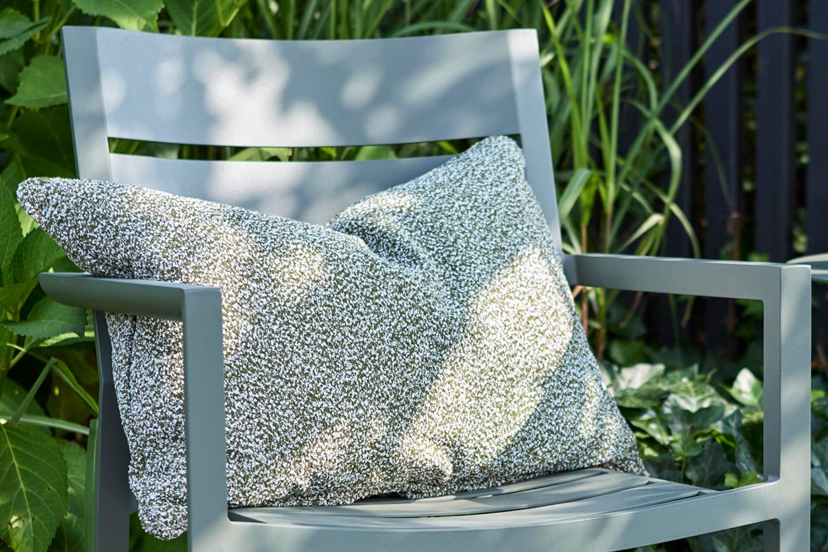 Premiumkudde av högsta kvalitet, fylld med mjukt syntetiskt dun och med ett yttertyg i bouclé-inspirerad tyg i återvunnen polyester.