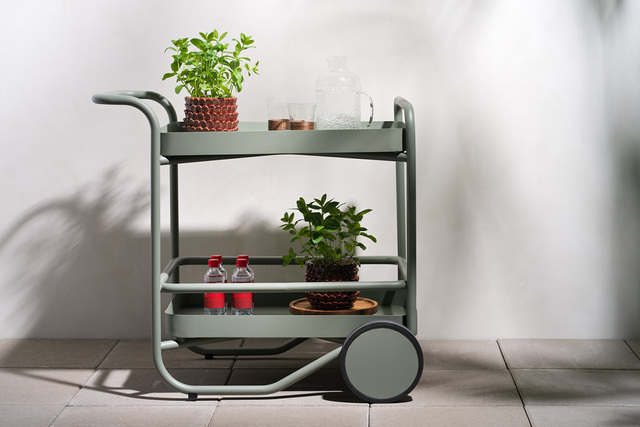 Mer än ett serveringsbord – Trolly är ett multifunktionellt statement piece för modernt uteliv. Inspirerat av skandinavisk design förenar det mjuka linjer med smart funktion. Använd det som serveringsvagn, sidobord eller lyft av brickorna för att servera direkt. Harmoniska övergångar mellan stomme, brickor och hjul lyfter den mångsidiga designen. Design: Johan Skoogh.
